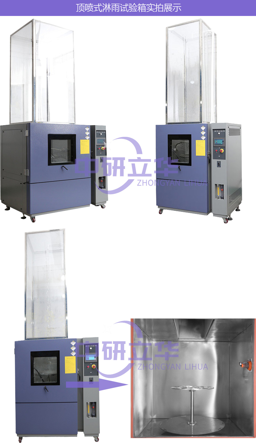 介紹:IP3-6頂噴式淋雨試驗箱模擬噴水環(huán)境,用于考核電工產(chǎn)品,外殼和密封在淋雨環(huán)境下能否保證設(shè)備和元件良好性能的試驗。